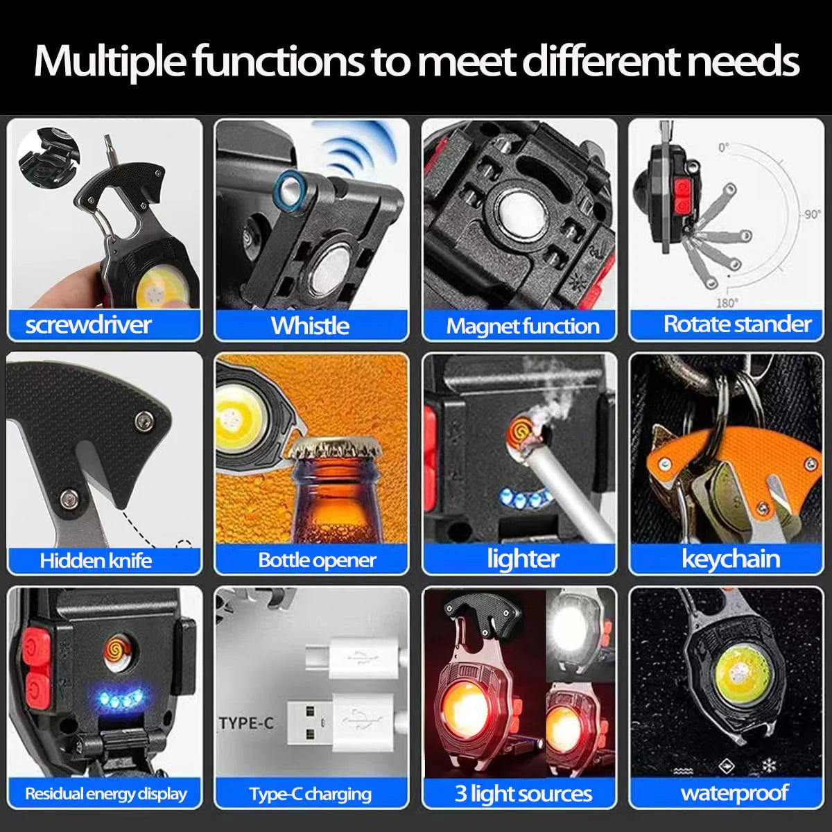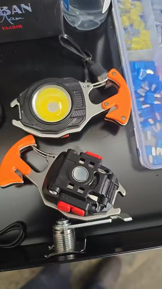 GlowPro™ is your all-in-one keychain companion — LED flashlight, screwdriver, lighter, bottle opener, whistle, and more. Compact, rechargeable, and ready for any situation — from outdoor adventures to everyday emergencies